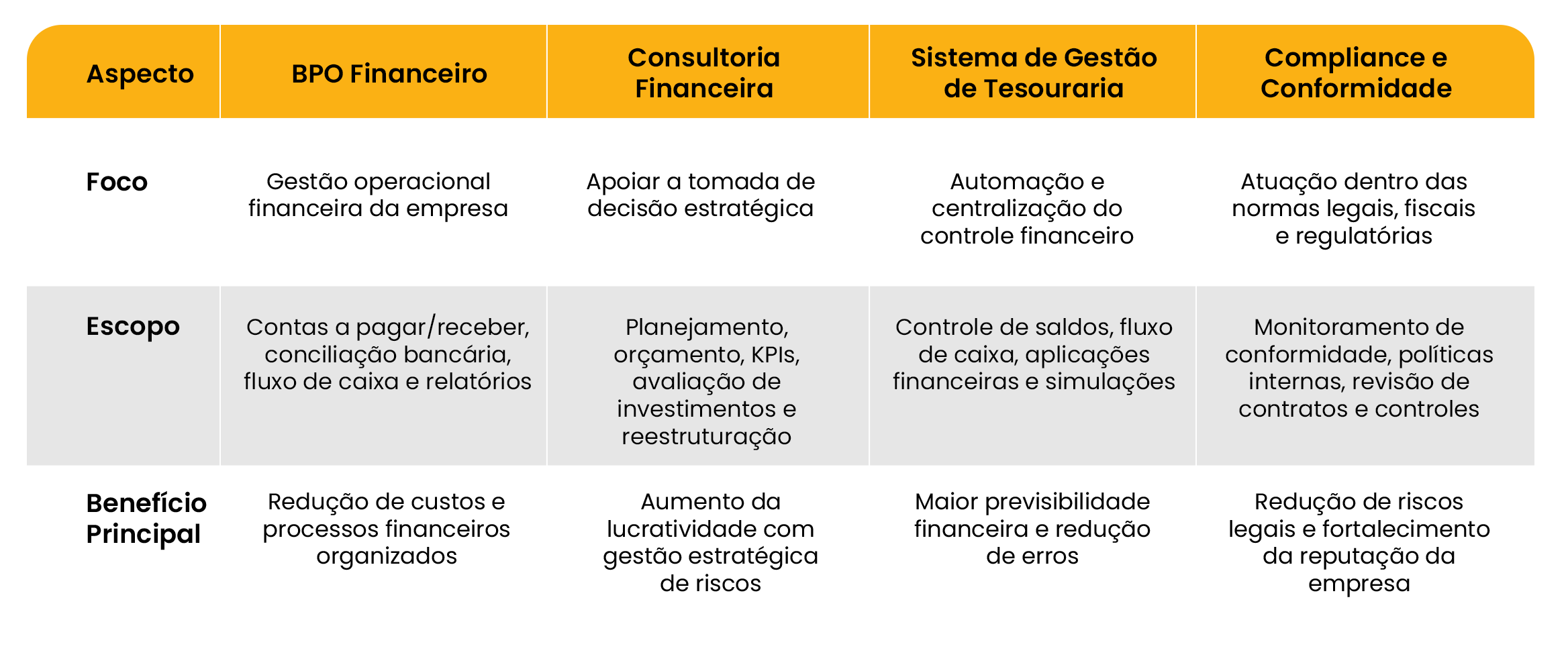 BPO Financeiro (Business Process Outsourcing) é a terceirização das rotinas financeiras de uma empresa — como contas a pagar e receber, conciliação bancária, fluxo de caixa e relatórios — para garantir mais eficiência, segurança e tempo livre para o empreendedor focar no crescimento do negócio